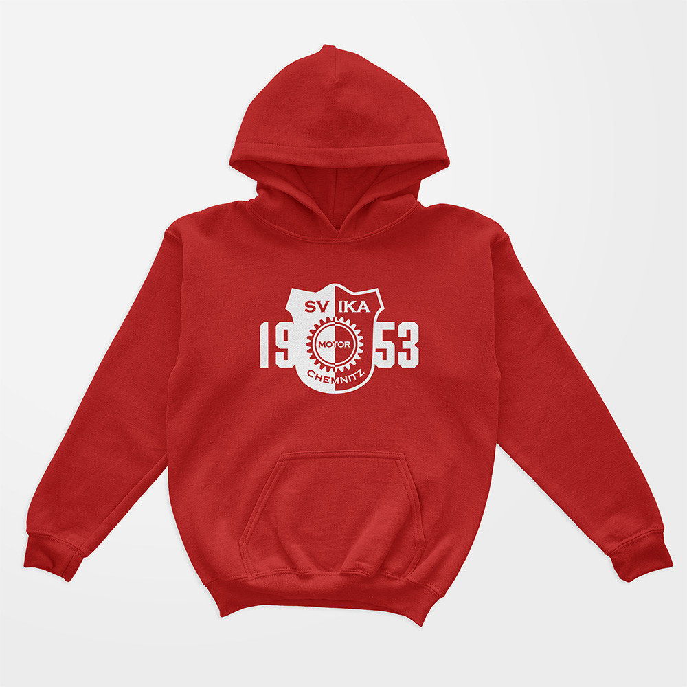 Offizieller Kids Fan-Hoodie des SV IKA Chemnitz e.V. – erhältlich in Schwarz, Weiß und Rot.
