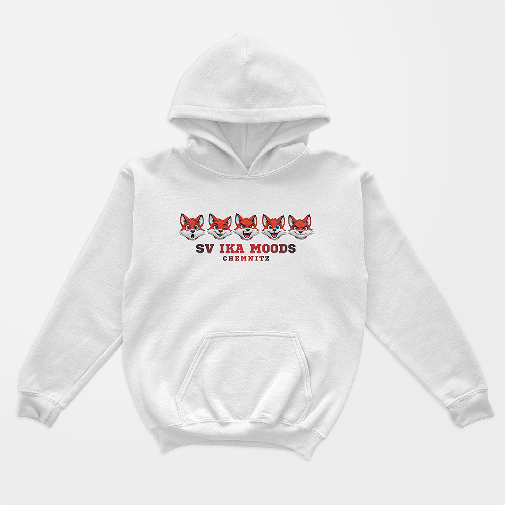 Offizieller Kids Fan-Hoodie des SV IKA Chemnitz e.V. – erhältlich in Schwarz, Weiß und Rot.