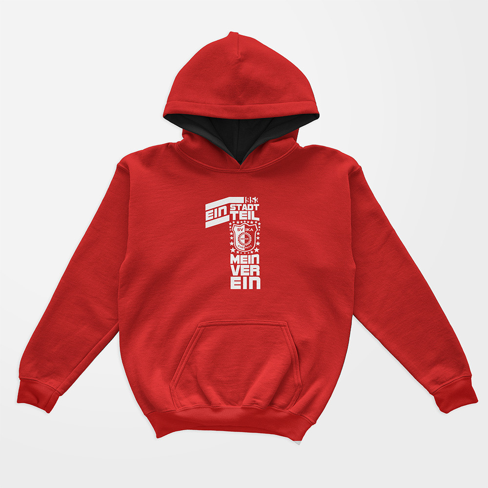 Offizieller Kids Fan-Hoodie des SV IKA Chemnitz e.V. – erhältlich in Schwarz/Rot und Rot/Schwarz.