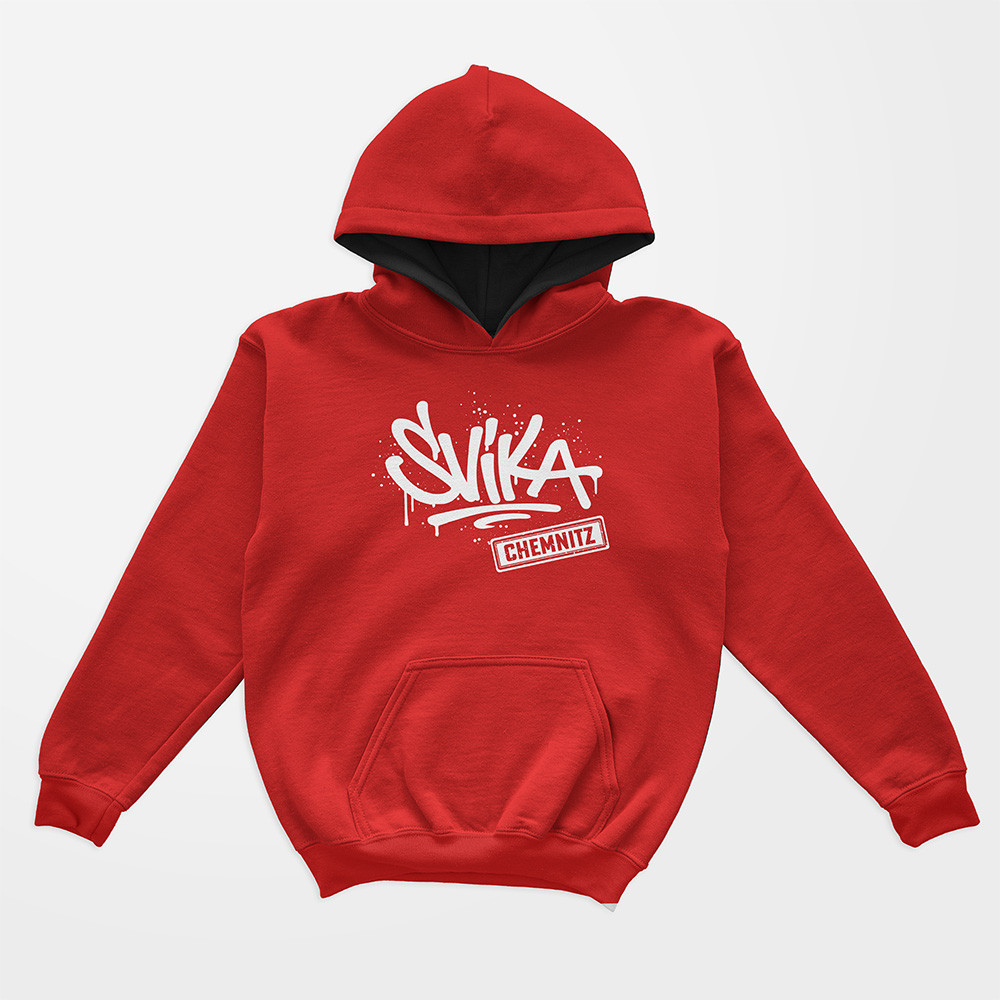 Offizieller Kids Fan-Hoodie des SV IKA Chemnitz e.V. – erhältlich in Schwarz/Rot und Rot/Schwarz.