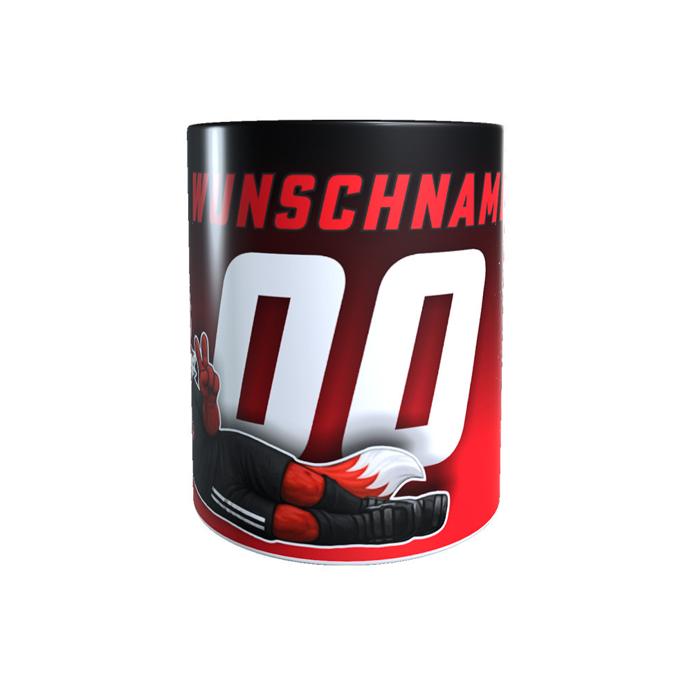 Das kraftvolle Rot-Schwarz-Design wird durch das dynamische Maskottchen ergänzt und steht für Teamgeist, Leidenschaft und Zusammenhalt.