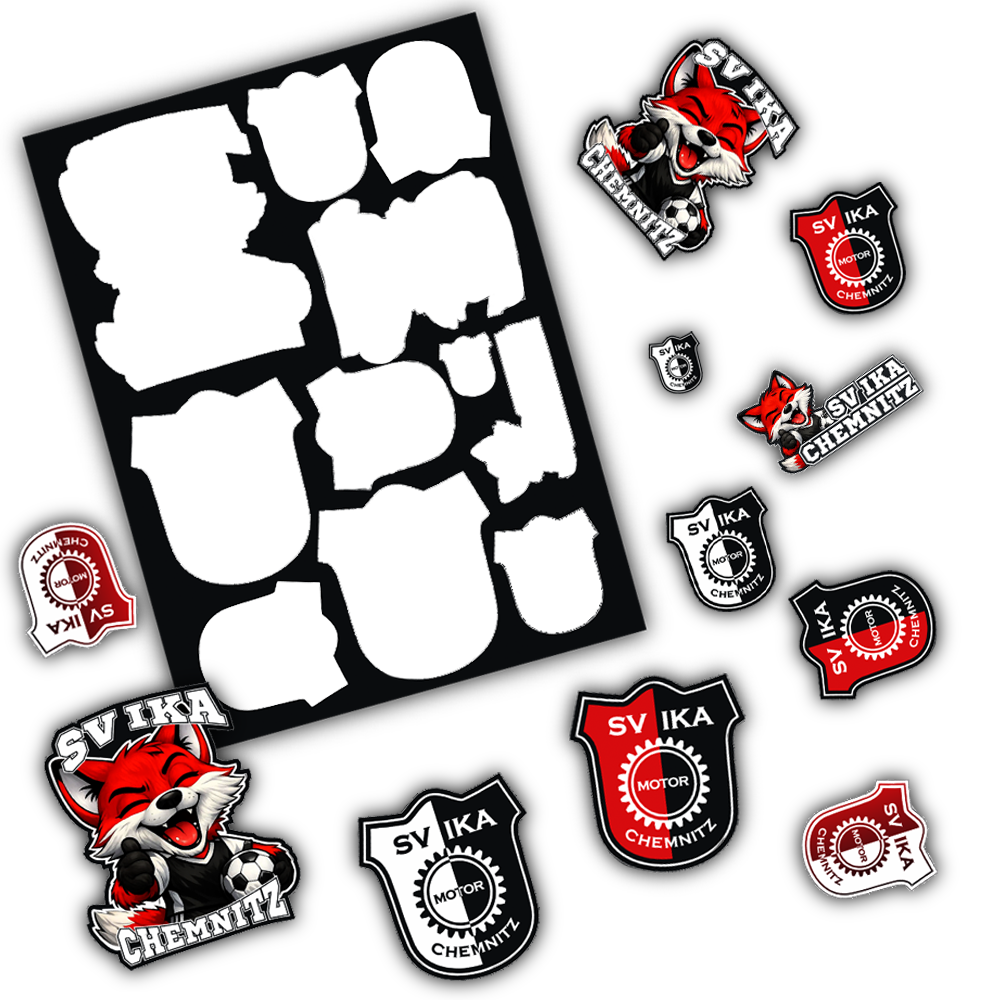 Mit dem SV IKA Chemnitz Sticker-Set bringst du deine Vereinsliebe überall hin – ob auf Laptop, Trinkflasche, Handyhülle, Ordner oder Auto.