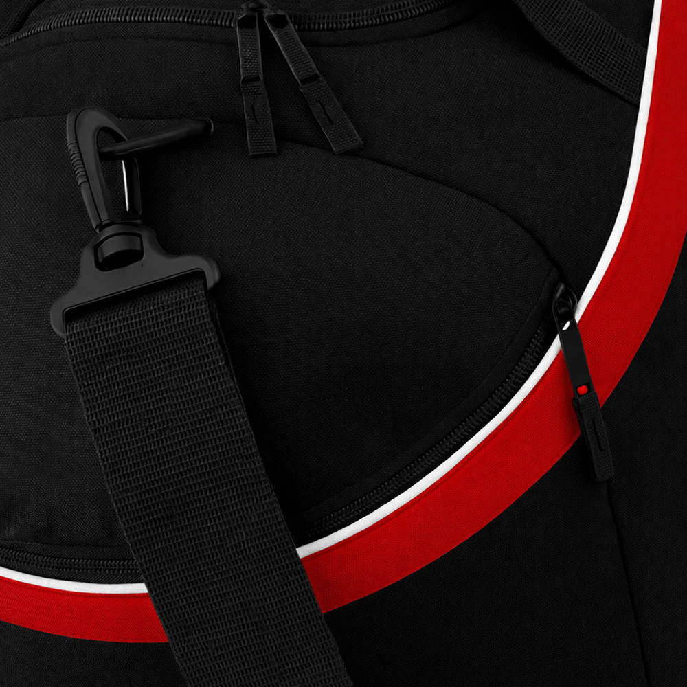 Das sportliche Design in Schwarz-Rot mit Vereinslogo steht klar für Teamgeist und Funktionalität.