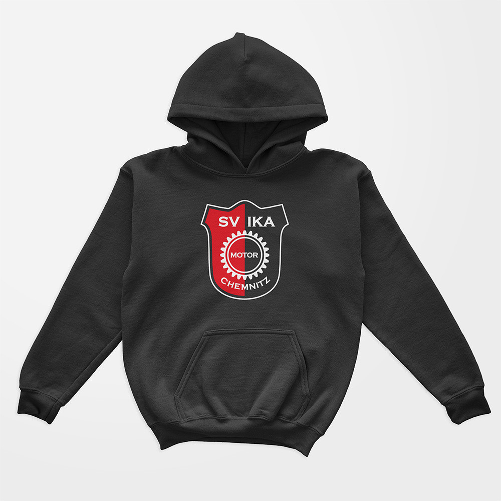 Offizieller Kids Fan-Hoodie des SV IKA Chemnitz e.V. – erhältlich in Schwarz, Weiß und Rot.