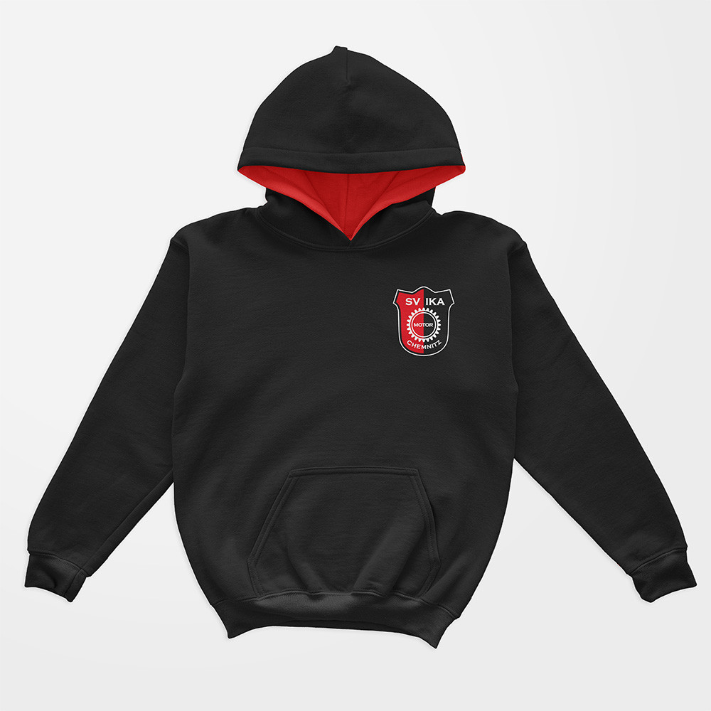 Offizieller Kids Fan-Hoodie des SV IKA Chemnitz e.V. – erhältlich in Schwarz/Rot und Rot/Schwarz.