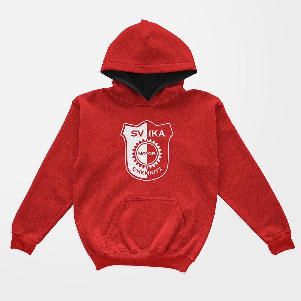 Offizieller Kids Fan-Hoodie des SV IKA Chemnitz e.V. – erhältlich in Schwarz/Rot und Rot/Schwarz.