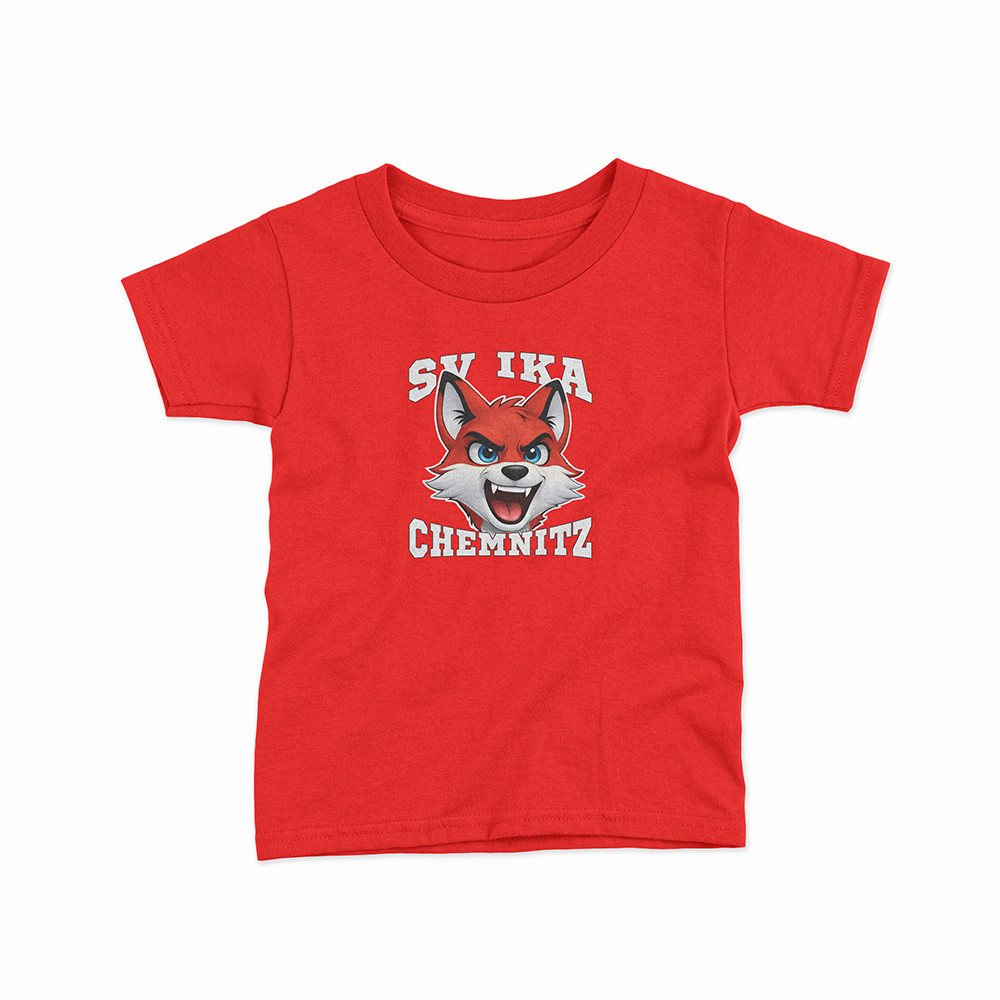 Offizielles Kids Fan-Shirt des SV IKA Chemnitz e. V. mit markantem Fuchs-Kopf-Motiv und „SV IKA Chemnitz“-Schriftzug auf der Vorderseite.