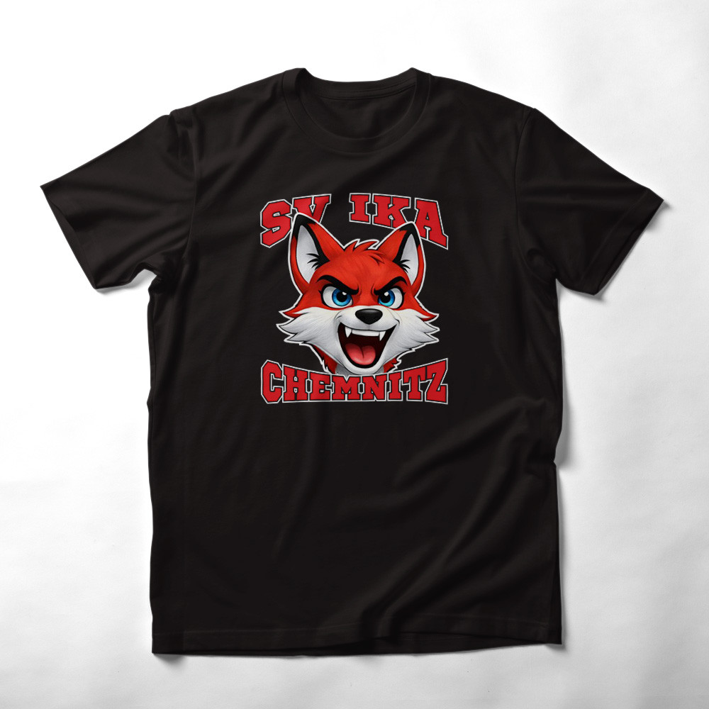Offizielles Fan-T-Shirt des SV IKA Chemnitz e. V. mit markantem Fuchs-Kopf-Motiv und „SV IKA Chemnitz“-Schriftzug auf der Vorderseite.