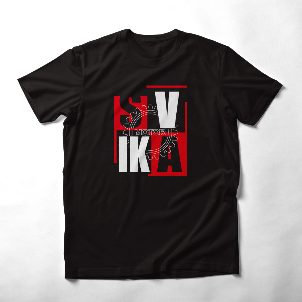 Das Shirt zeigt ein modernes Split-Design, bei dem die Buchstaben SV IKA mit dem traditionellen Motor-Zahnradlogo kombiniert werden.
